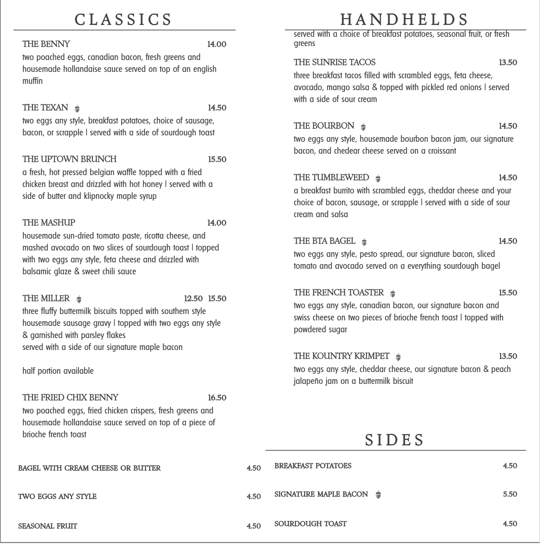 cafe menuSEvery item on our menus is made-to-order using fresh ingredients from local suppliers. Local suppliers: Tara’s TreatsSimply SourdoughMaplehofe DairyCurtze Food Service